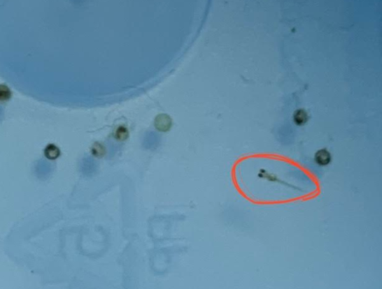 とても小さいですが、頑張って泳いでいるのが見えます。