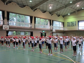 2学期が始まり、運動会に向けての取組が始まっています。各学年、体育の時間には表現や徒競走の練習などに一生懸命に取り組んでいます。これからは運動場での練習も始まります。暑い日の練習では、体調に気をつけながら取組を進めていきます。