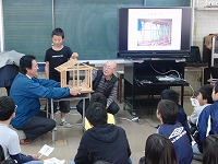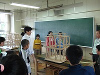 この講座は(1)「地震を模擬体験しよう」 (2)「地震に負けない家にしよう」 (3)「すじかいの効果を実感」 の3つの学習で構成されており、児童は、体験や実験などを通して、楽しく学んでいました。