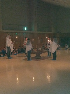 5年生の林間学習は、ウォークラリーの後、塗り箸をづくり行いました。その後、天気が良くないため、外でのキャンプファイヤーに代わって、室内でのキャンドルサービスを行いました。子どもたちは、実行委員を中心に、準備してきたクイズや歌・フォークダンスで大いに盛り上がりました。明日はカレー作りを行う予定です。