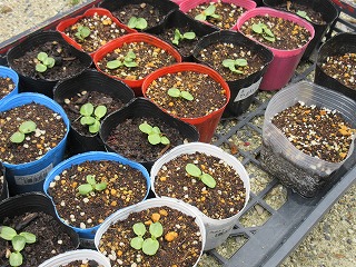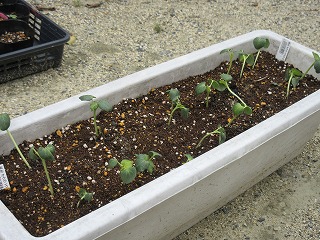 こんにちは。ここ2、3日は少し気温が下がり肌寒い日が続いていますが、児童のみなさんは元気に過ごしていますか。臨時休業の間に担任の先生たちで、種をまいたり苗の植え付けをしたりしました。学校が再開したらみなさんで一緒に観察しましょう。