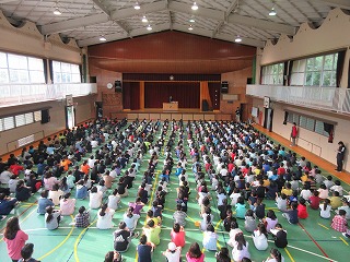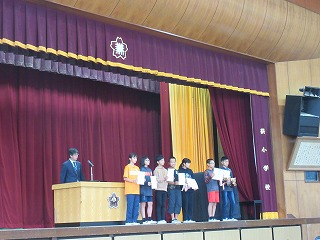 10月31日(木)に11月の全校朝礼を行いました。校長から先月の災害に触れ、自分の命を守ることの大切さについての話を聞きました。また6年生が参加した京田辺市陸上交歓記録会の表彰式も行われ、精一杯自分の力を出し切った成果ををたたえました。最後に11月の月目標「自分から進んであいさつをしよう。」について担当の先生からの話を聞きました。