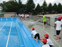 6月14日(木) 午後、5、6年生がプール清掃を行いました。