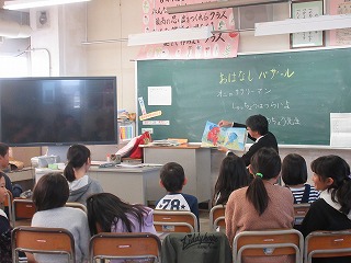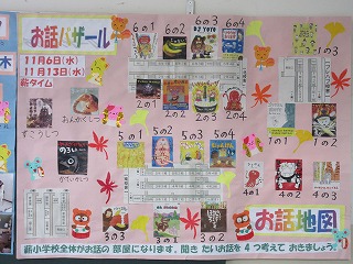 11月6日、13日(水)の薪タイムにお話バザールを行いました。薪小学校全体がお話の部屋になり、それぞれの教室で教師や図書ボランティアさんが読み聞かせを行いました。児童は、校舎図や本の紹介が印刷されたお話地図を手に、自分が聞きたいお話の部屋に足を運んでいました。