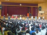 その後、昨年の12月1日(日)に行われた「第22回京田辺市子どもの主張大会」で本校代表として発表した児童の作文発表がありました。『ぼくの将来の夢』という題名で、自分が実際に体験したことから感じ・考え、そのことから将来の自分を見つめるという内容の作文で、1年生から6年生までの全校の子どもたちも真剣に聞いていました。
