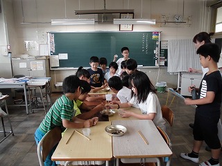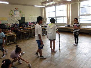 6月18日(火)の2校時と中間休みに6月集会を行いました。6月集会に向けて運営委員や実行委員の人たちが準備をしてきました。アジサイグループごとに、宝探し、まとあて、豆つかみ、缶つみ、ものあて、の5つのコーナーを回りました。高学年は低学年に教えてあげたり、みんなで協力したりしてアジサイグループの仲を深めることができました。