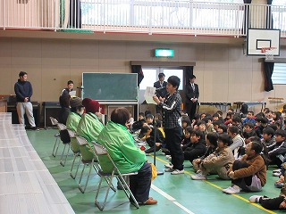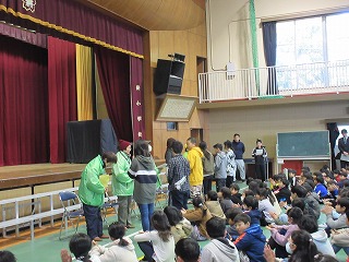 2月12日(水)安全ボランティアの皆さんを招いて感謝の集いを行いました。この日は、児童朝礼の時間で、安全ボランティアの皆さんにお越しいただいて、日ごろの感謝を伝えるため、子どもたちからお礼の言葉を述べた後、感謝の気持ちを込めた寄せ書きやメッセージを渡しました。これからも子どもたちの安全を見守っていただきますようお願いいたします。