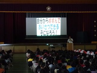 そうじとあいさつの話を真剣に聞けていました。