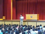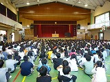5月7日(水)全校朝礼で、「愛鳥週間」に関わる学校長の講話の後に、木田先生から今月の月目標「元気よくあいさつをしよう」についてのお話がありました。