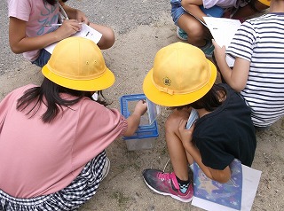 9月18日(水)3年生が理科の学習で昆虫探しを行いました。3年生の児童は中庭で一生懸命昆虫を探しましたが、なかなか見つかりません。草むらや茂みを熱心に探すとバッタやコオロギを見つけることができました。この後、昆虫の特徴や体のつくりなどを詳しく学習します。