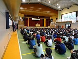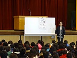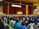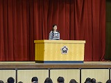 学校長講話に続いて、昨年12月7日に行われた「第23回京田辺市子どもの主張大会」の代表児童による発表がありました。自分の経験から感じたこと、考えたこと、これから心がけていきたいことなどを分かりやすく堂々と発表しました。
