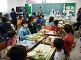11月21日(木)の給食時間に、薪幼稚園(5歳児)の子どもたちが”給食