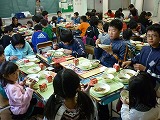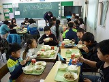 給食の配膳と会食を体験することができました。