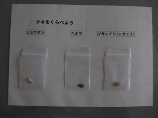 3種類のタネが比べられるよう、袋に入れました。みんなが登校した時に、また見てくださいね。