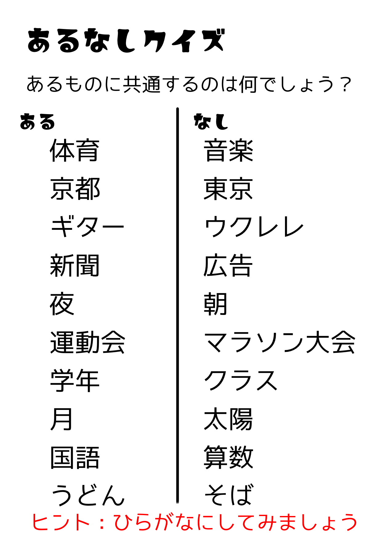 ・ヒントを見たい人は、ヒントをクリックしてください。
