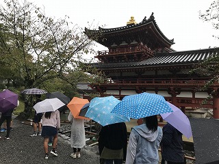 10月25日(金)6年生が校外学習へ行きました。この日は、雨が降るあいにくの天気でしたが、子どもたちは元気いっぱい校外学習を楽しみました。行った先は、平等院鳳凰堂、銀閣寺、金閣寺です。たいへん観光客も多い中でしたが、子どもたちは、社会の学習に合わせて、しっかり見学することができました。この体験を今後の学習に生かしてほしいと思っています。
