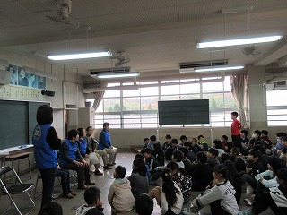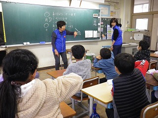 11月28日(木)に4年生が福祉体験学習として手話体験を行いました。社会福祉協議会や手話サークル「ひよこ」の皆様に来ていただき、手話を使って話したり、自分の名字を表す手話を教えていだいたりしました。子どもたちにとって貴重な体験学習となりました。