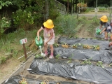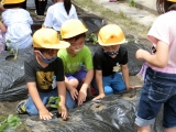 苗の植え方の説明を聞いた後、グループごとに苗を植えました。