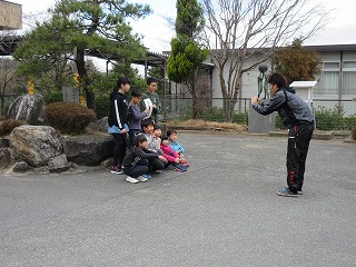 6年生に感謝を伝える活動の一環として、アジサイグループごとに色紙を作成し、メッセージを書き込み、6年生にプレゼントするという取組を行っています。この日は、異年齢集団のアジサイグループごとに、色紙に貼る写真を撮影を行いました。6年生に感謝の気持ちが伝わるといいですね。
