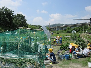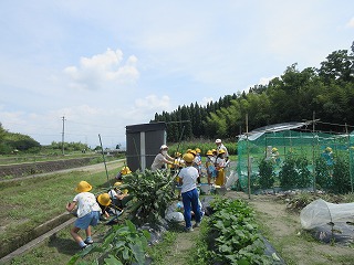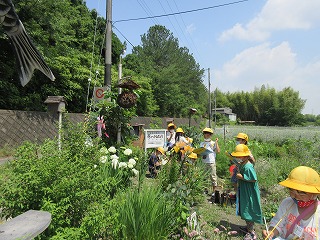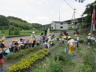 2年生が生活科の「町たんけん」の学習で薪小学校の校区に出かけました。学校の北側方面の畑の様子を見学しました。野菜を育てている畑では、大きく実ったキュウリやナス、トマトなどの夏野菜を、花畑では、きれいに咲いているマリーゴールドやユリなどたくさんの花をじっくりと観察しました。またオタマジャクシやカエル、バッタなど色々な生き物も発見していました。小学校の近くには畑や田んぼなど自然が多く広がっていることに気付くことができたのではないでしょうか。