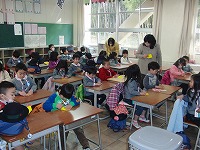 2月2日(木) 午後に来年度入学予定児の体験入学・保護者説明会を開催しました。大変寒い中でしたが、保護者とともに子ども達は元気に学校にやってきました。教室でははじめて小学校の机といすに座り、早くも1年生の気分を味わいました。