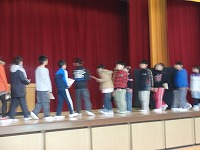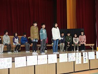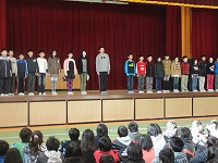 3月4日(月) 児童朝礼で、新しい児童会役員の引き継ぎ式が行われました。