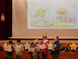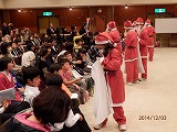 12月3日(水)9時から、中央公民館の大ホールで「第37回京田辺市合同なかよしクリスマス会」が開催されました。市内小中学校の特別支援学級の子ども達、南山城支援学校の子ども達が一堂に集まり、みんなでクリスマスツリーに飾りつけをして、「赤鼻のトナカイ」「あわてんぼうのサンタクロース」を歌ったり、各学校の発表が行われました。合奏、歌、ダンス、朗読、演劇など多彩な発表で交流でき、楽しい一時を過ごせました。本校のたんぽぽ・こすもす学級の子ども達もしっかり発表していました。サンタさんからプレゼントをもらって喜んでいました。