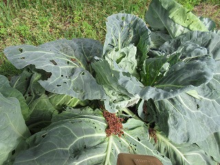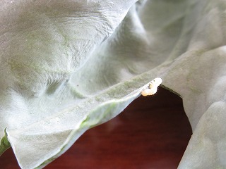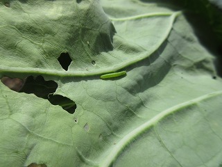 あなのあいたキャベツの葉っぱのうらをよく見ると、いましたいました・・・