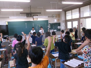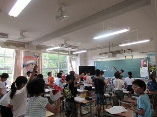 9月4日(水)の朝学習から応援練習が始まりました。5・6年生の応援団が担当学級に行き、夏休み前から応援団で話し合って決めたコールや応援歌、振り付けなどを教えています。毎朝、校内には元気な応援の声が響き、熱のこもった応援の様子がうかがえます。今後も応援練習を通して、運動会に向けて、各色の心を一つに絆を深めてくれることと思います。