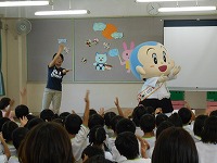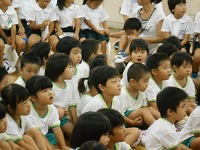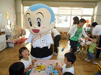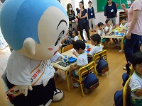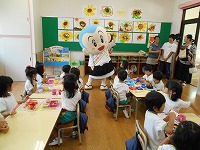 幼稚園で、食育教室がありました。毎月19日の「食育の日」と一休さんをかけて、京田辺観光大使の一休さんが幼稚園にきてくれました。ホールでは、栄養士の方から赤、黄、緑の食べ物のお話を聞いたり、一休さんと手遊びや質問コーナーを楽しみました。