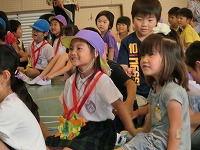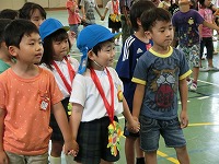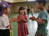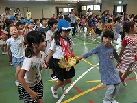 今日は、5歳児が薪小学校に行き、一年生とふれあい遊びをしました。自己紹介をしたり、まねっこ遊びをしたりして、仲良くなった子供たちです。フォークダンスや体操も一緒にして、体も元気いっぱい動かして遊びました。一年生の皆さんから、メッセージを書かれたペンダントをもらって大喜びの5歳児です。幼稚園からも「これからよろしくね」と、手紙を渡しました。これからも小学校とのふれあい、連携を大切にしていきたいと思います。