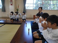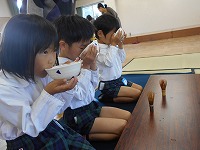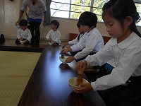 今日は、2回目のお茶会でした。前回のお茶会で教えてもらった歩き方やお辞儀の仕方などを思い出しながら、今日は、自分で茶筅でお茶を点てました。みんな落ち着いてすることができ、先生に「上手ですね」「きれいなお辞儀ができていますね」と褒めていただきました。 次回は、お母さんにお茶をおもてなしすることを楽しみにしている子ども達です。
