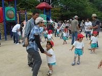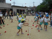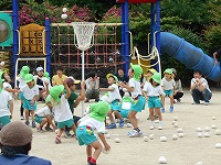 今日は、ファミリー参観です。毎朝している体操を、みんなでした後は、各学年ごとに、玉入れの玉をを使って遊びました。みんなで協力したり、ふれあいを楽しみながら遊びました。