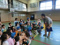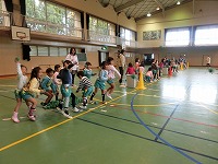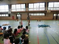 幼小連携の一つである薪小学校の先生による出前授業がありました。小学校の体育館で