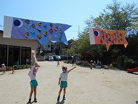 昨日の絵の具遊びが、こいのぼりに変身!!