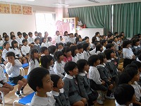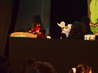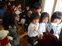 地域の人形劇団「ひとやすみん」が幼稚園にきてくださり、子ども達が大好きな「はらぺこあおむし」や「おおかみと7匹のこやぎ」のお話をみせていただきました。お話のストーリーに入り込んで「それは、おかあさんじゃないよー!」など子ヤギの人形に教えている子ども達の姿もみられました。人形にふれあうことができたのも嬉しそうでした。