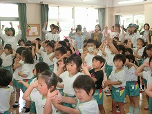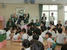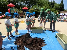 5歳児は、環境パートナーシップの方と一緒にゴーヤの苗を植えました。これから世話をしながら、涼しいグリーンカーテンになることを楽しみにしています。