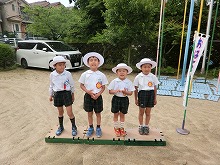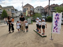 今日から6月です。昨日の雨に洗われて空が澄み渡り、緑がまぶしく光っています。5歳児は、毎朝「おはよう隊」のあいさつ当番活動をしています。今日も「おはようございます!」と、元気の良い声が幼稚園に響き、気持ちよく挨拶を交わしています。