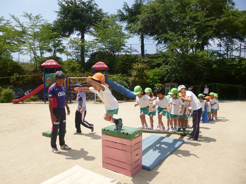 コーチの話をよく聞いて、汗をいっぱいかきながらいろいろな動きや遊びを体験することができました。