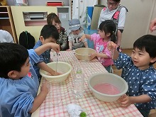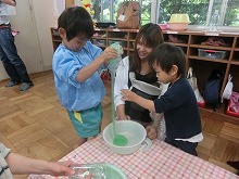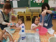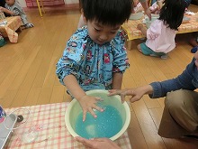 これからも感触遊びを通して、「どうしてこんなになったのかな」という不思議さや五感を刺激する遊びを経験していきたいと思います。