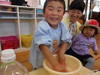 これからも、遊びの中で土や粘土や水などでいろんな感触を味わったり、じっくり遊ぶ経験をしていきたいと思います。お家の方のご協力ありがとうございました。
