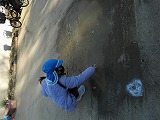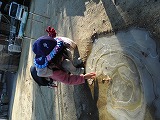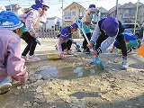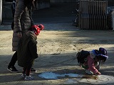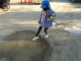 登園すると園庭の水たまりに氷が張っていました。