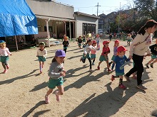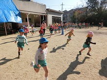 今週からマラソンごっこが始まりました。体操をした後、みんなで園庭を走っています。これから毎日、寒さに負けず、マラソンごっこをしていきたいと思います。