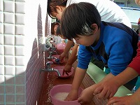 前日には、5歳児の子どもたちが餅米をていねいに洗ってくれました。