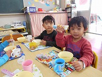 つきたてのおもちは、ふわふわ”きのこもち”にしていただきました。「おいしーーー」「おかわり!」満面の笑みを浮かべほお張る子ども達でした。