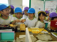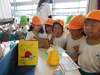 4,5歳児の子ども達が、となりの薪小学校の作品展を見学しました。「せんせい みてー。これすごいな」「どうやってつくったんかな」など、小学生のバラエティに富んだ夏休みの作品を興味津々見ていました。