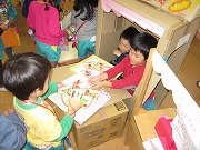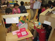 4歳児のお部屋では、たこ焼き屋、ピザ屋、アイスクリーム屋、