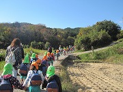 遠足に行きました。途中の田畑を見ながら「大根が土からでてるよ」「柿がいっぱいなってるね」と楽しく話しながら元気に歩きました。