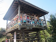 雲一つない晴天に恵まれ、全園児が甘南備山のおじさんと一緒に