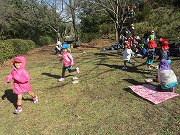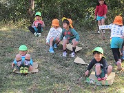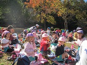 芝生広場では、みんなでおにぎりお弁当を食べ、芝すべりや鬼ごっこをして楽しく遊び、とても気持ちのよい秋の一日でした。